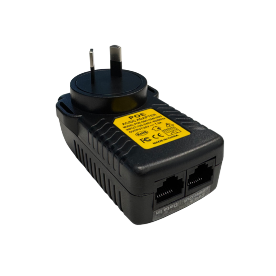Passive 24vdc PoE Power Supply included, x2. Or 12vdc (not included)