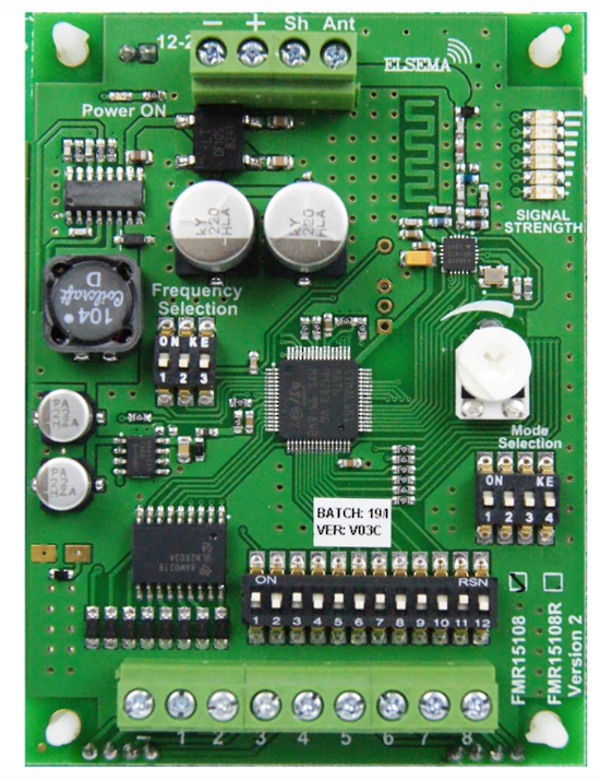Users can select from eight different narrowband frequencies and program an unlimited number of transmitters to the receiver. Programming the transmitter is straightforward, requiring only the matching of the 12-way dip switch settings between the receiver and the transmitter.