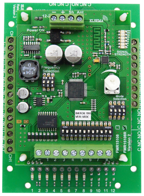 The FMR16108R receiver offers flexible relay modes that can be set to momentary, latching, or delayed Off. These different output modes can be easily selected using the onboard 4-way dipswitch, providing several preselected mode combinations to suit a wide range of application.