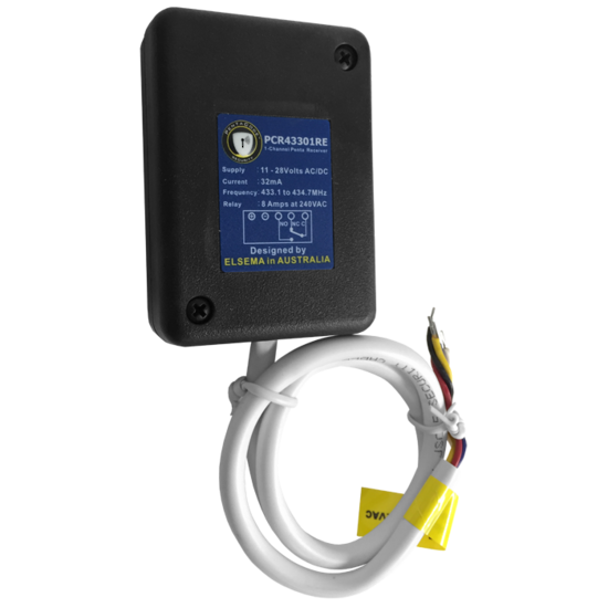 In summary, the PCR43301RE receiver combines compact design with versatile coding options, making it an ideal choice for a wide range of wireless control applications.