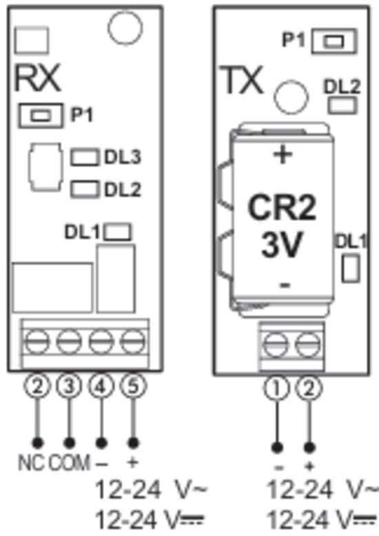 Power supply voltage: Rx: 12-24V~ / V Tx: 12-24V~ / or battery operated
