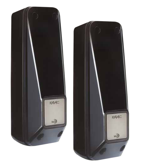 System with traditional 12/24V receiver power supply and traditional or battery operated transmitter power supply. It avoids having to lay a cable to the transmitter (battery) and features selectable channels which allows the installation of up to 4 pairs of photocells and protection from interference produced by external light sources (such as vehicle LED headlights).