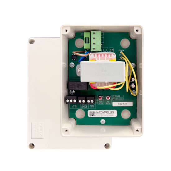 Boxed controller for HM-SMOKE230 230V/AC smoke detectors, with relay output